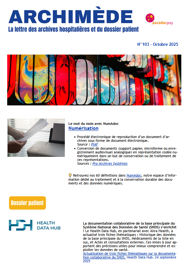 Consultez les dernières actualités des archives hospitalières dans le numéro 103 d’Archimède.