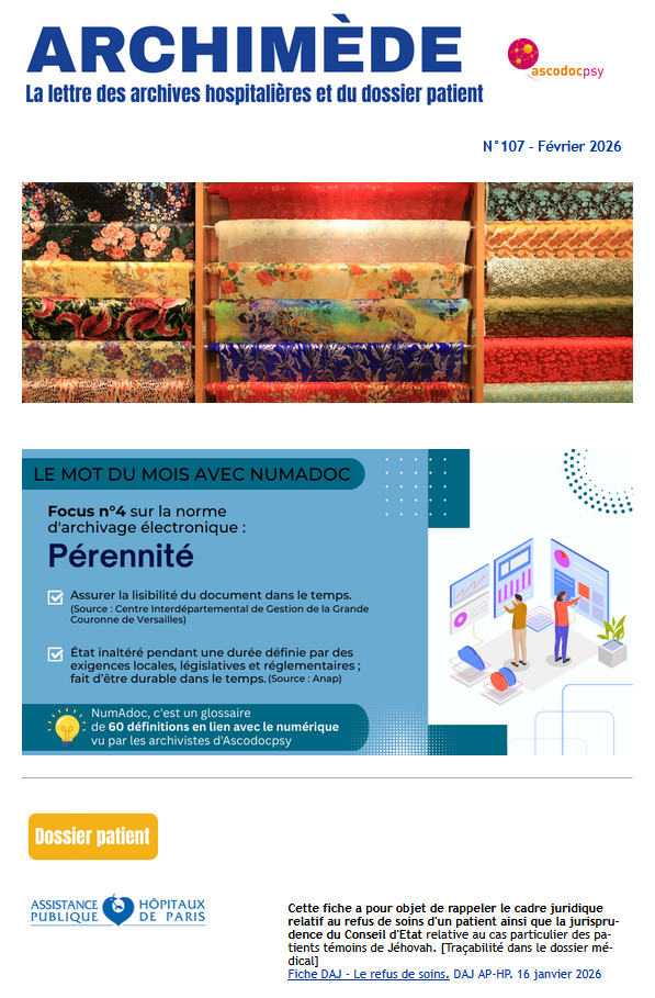 Consultez les dernières actualités des archives hospitalières dans le numéro 107 d’Archimède.