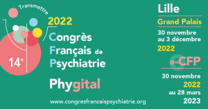 Communiquez et partagez votre expérience au Congrès Français de la Psychiatrie en décembre 2022 à Lille : au programme, rencontres avec l’Expert, débats, sessions thématiques, partages de pratiques cliniques, forum des associations et poster. Dates limites de soumission :  Lundi 28 février 2022 : pour les Sessions thématiques, Rencontres avec