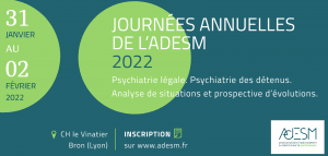 Après l’annulation de l’édition 2020, l’AdESM a le plaisir d’organiser ses prochaines journées annuelles qui auront lieu du 31/01 au 02/02/2022 avec pour thème : Psychiatrie légale. Psychiatrie des détenus.Analyse de situations et prospective d’évolutions. Consultez l’argumentaire des journées (disponible en version courte également). Informations et inscription sur le site
