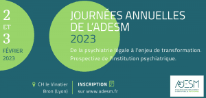 Les journées annuelles 2023 de l’AdESM se tiendront à Lyon les 2 et 3 février. Elles auront pour thématique : Psychiatrie légale. Psychiatrie des détenus.Analyse de situations et prospective d’évolutions.   Programme, inscription et informations pratiques sur le site de l’AdESM.