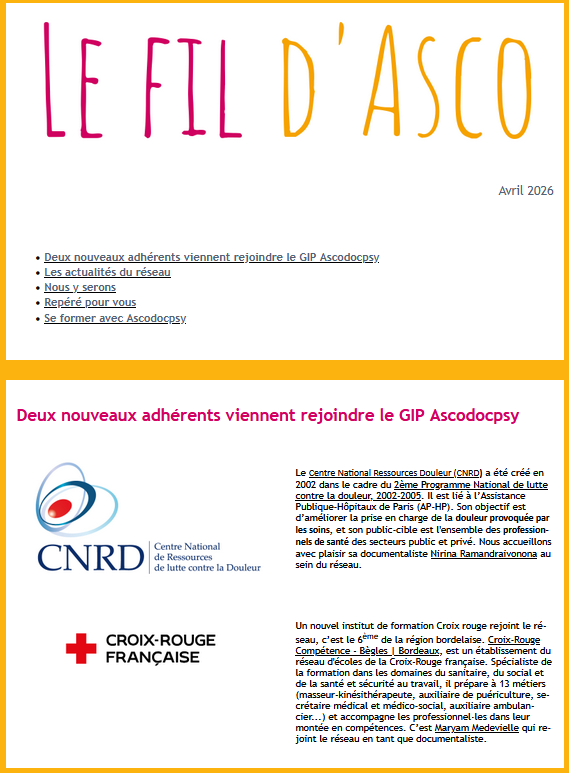 Le Fil d’Asco ? Pour vous tenir au courant chaque mois de l’actualité du réseau Ascodocpsy.
